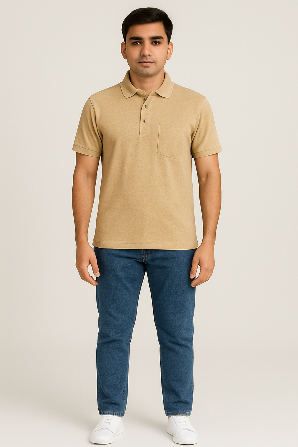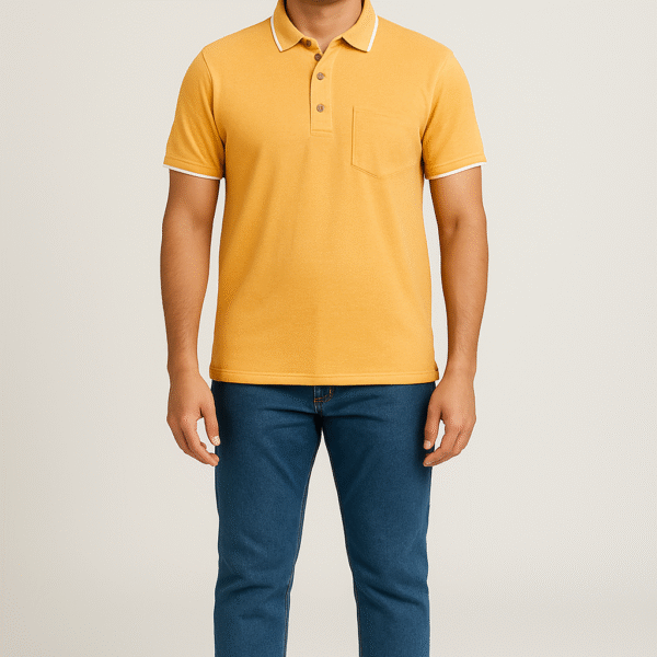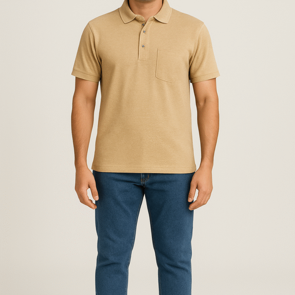 Classic plain polo T-shirt featuring a soft cotton blend, short sleeves, and a ribbed collar with a two-button placket. Comfortable and versatile for everyday wear or casual outings.